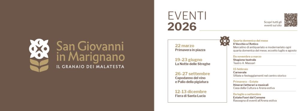 “Si tratta di uno strumento semplice ma efficace – commenta l’assessora al turismo e alla cultura Federica Cioppi – pensato per promuovere San Giovanni in Marignano durante tutto l’anno e rafforzarne la vocazione di destinazione turistica, invitando a vivere il territorio in ogni periodo e a scoprire un calendario di eventi che segna ogni stagione”.