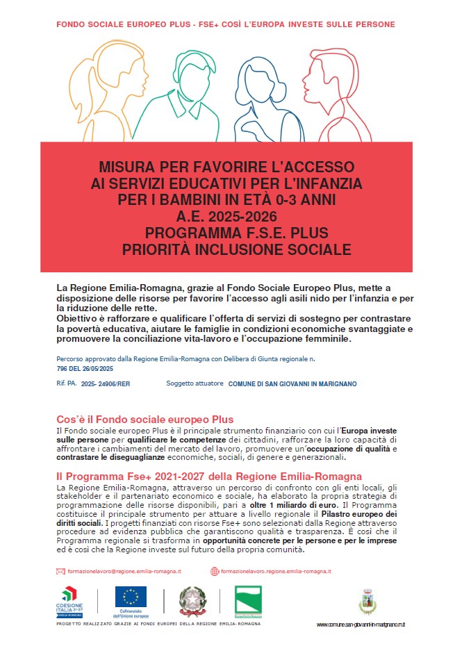 Anche per l’anno educativo 2025/2026 il Comune di San Giovanni n Marignano ha aderito a tale misura Rif. PA 2025-24906/RER – CUP H31I25000290009