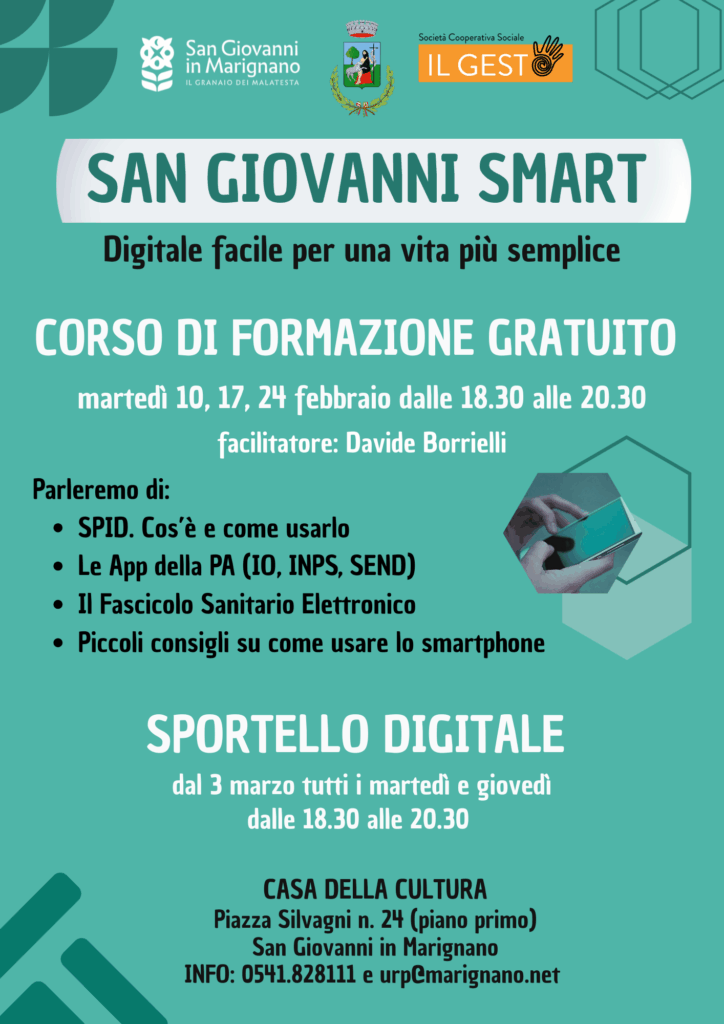 Ridurre le barriere tecnologiche e rendere i servizi online accessibili a ogni cittadino. Con questo obiettivo il Comune di San Giovanni in Marignano, in collaborazione con la Cooperativa Sociale Il Gesto, annuncia l’apertura dello Sportello di Facilitazione Digitale San Giovanni Smart.